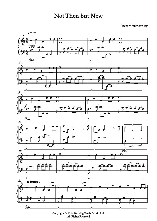 Piano sheet music for NOT THEN BUT NOW. Digital PDF delivered by email.
