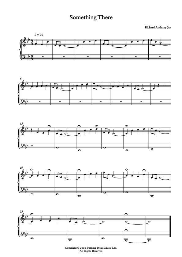 Piano sheet music for SOMETHING THERE. Digital PDF delivered by email.