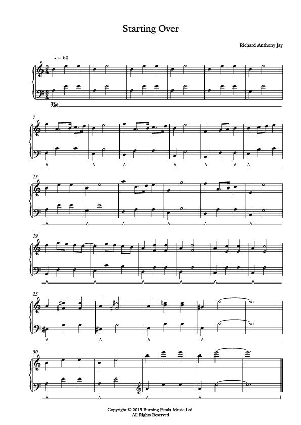 Piano sheet music for STARTING OVER. Digital PDF delivered by email.