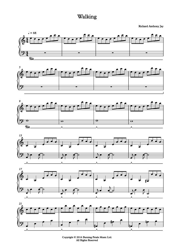 Piano sheet music for WALKING. Digital PDF delivered by email.